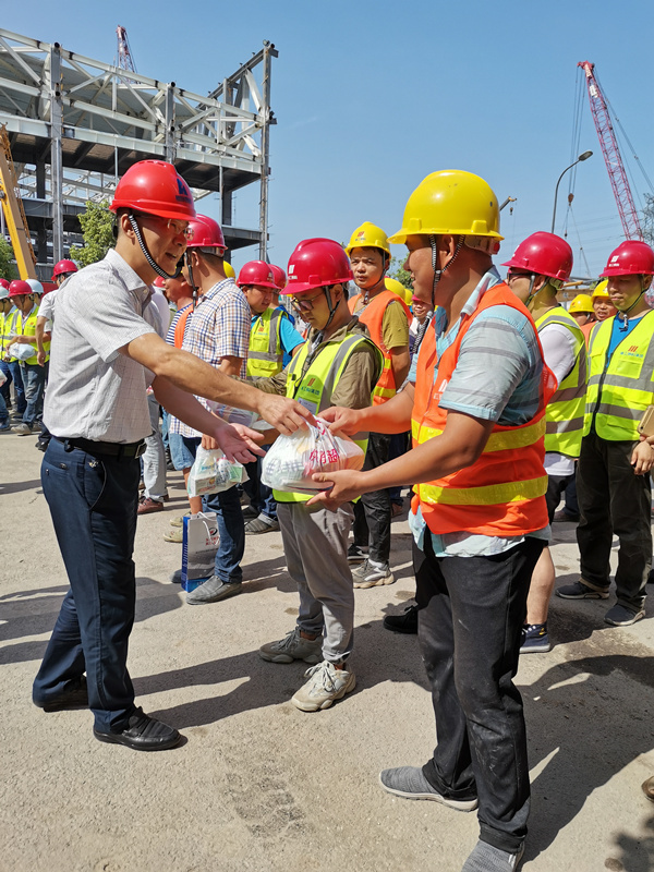 工地現(xiàn)場負(fù)責(zé)人代表工人對集團(tuán)領(lǐng)導(dǎo)的關(guān)心和問候表示感謝,并積極表示會全力做好防暑降溫工作,合理安排工序和休息時(shí)間,在確保施工人員身體健康的前提下,繼續(xù)加強(qiáng)工程安全和質(zhì)量意識,保質(zhì)保量完成各階段施工目標(biāo)。