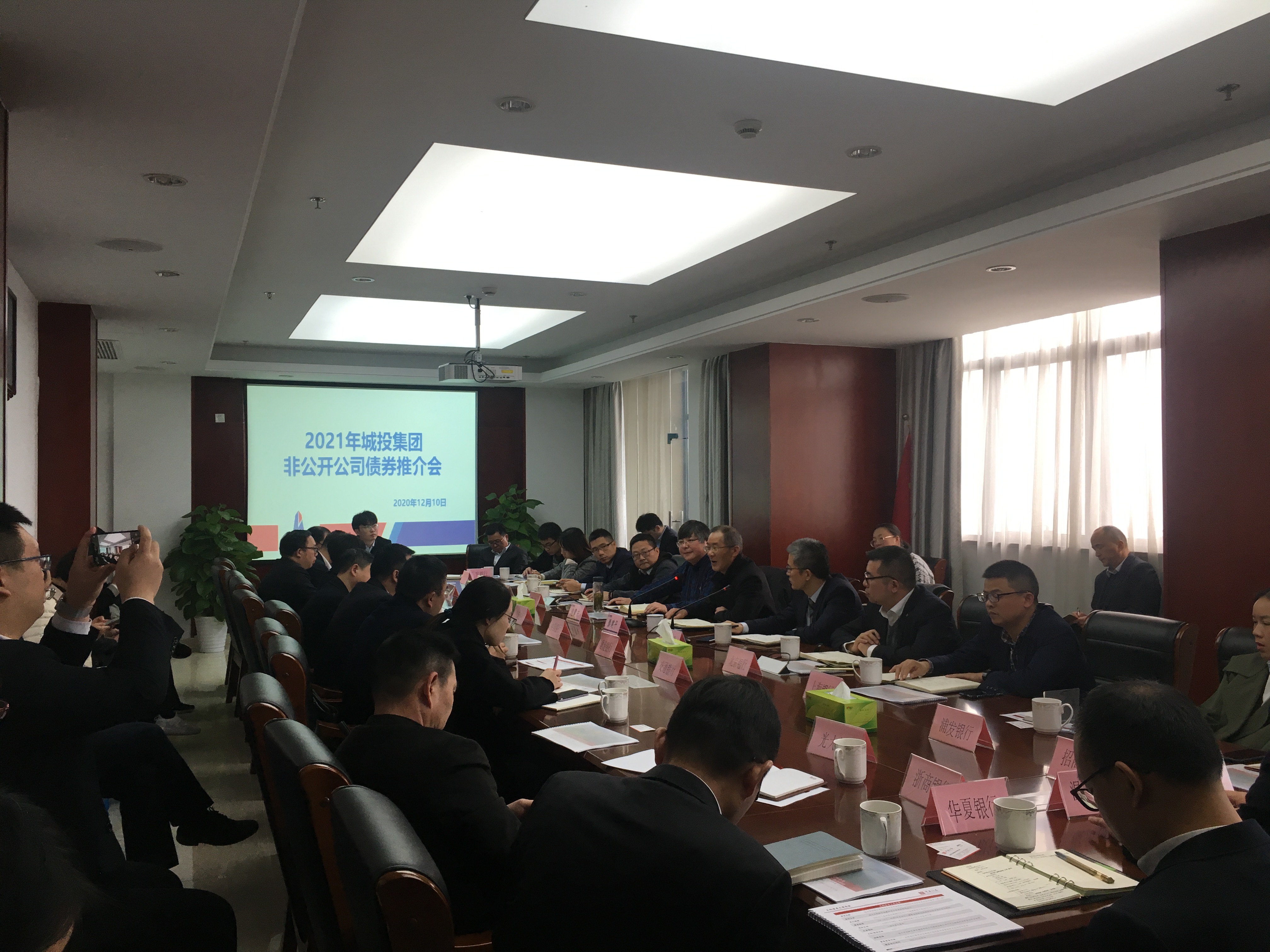 12月10日上午,建設集團在五樓會議室召開城投集團2021年非公開公司債券推介會。集團董事長滕建平、副總經(jīng)理包震東、華安證券債券總經(jīng)理陳紹山以及工商銀行、農(nóng)業(yè)銀行、中國銀行、建設銀行、交通銀行等24家銀行有關(guān)代表和華安證券項目組共50余人參加會議。