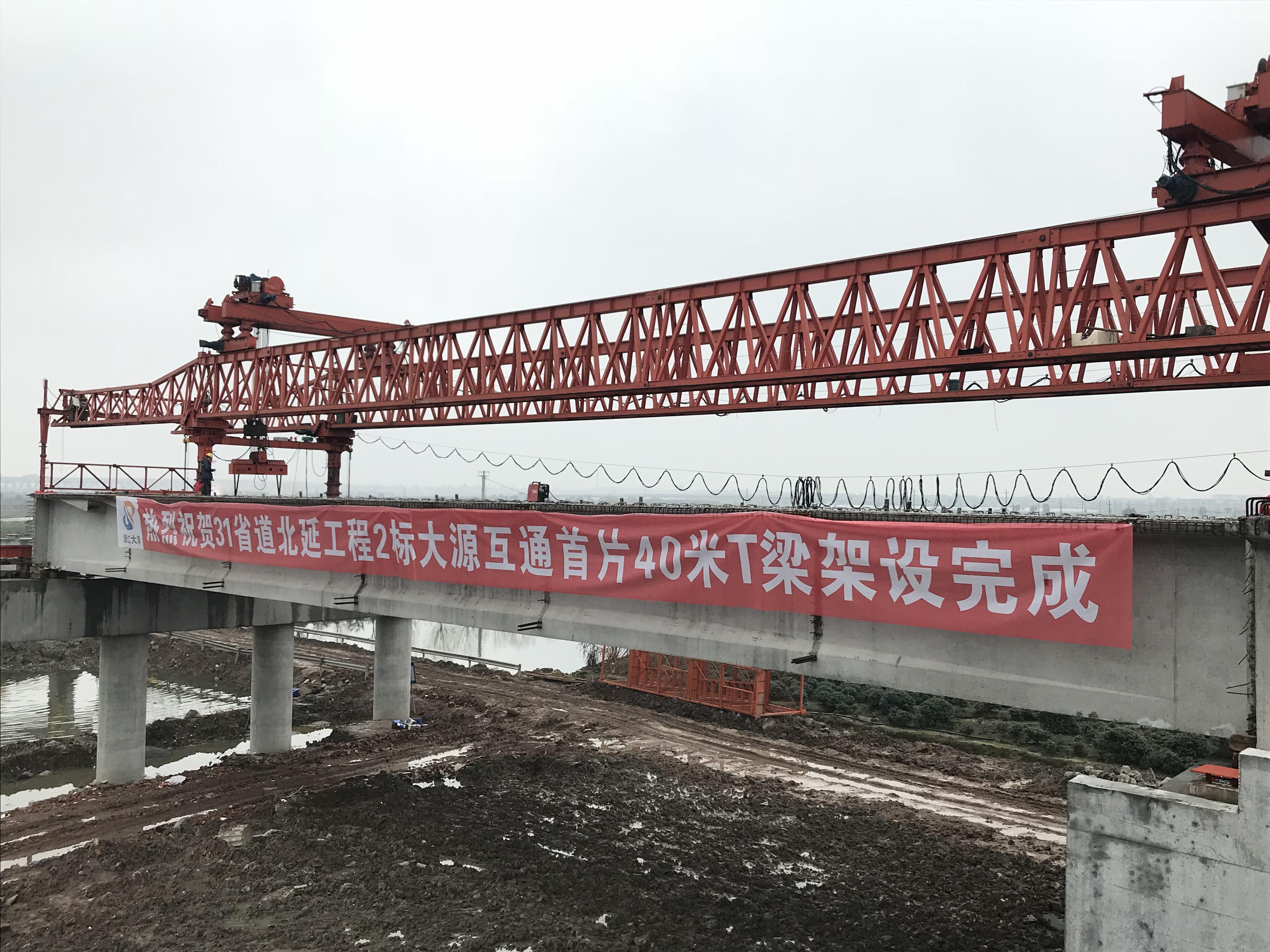 31省道北延工程大源互通主線橋首片40米T梁順利架設完成