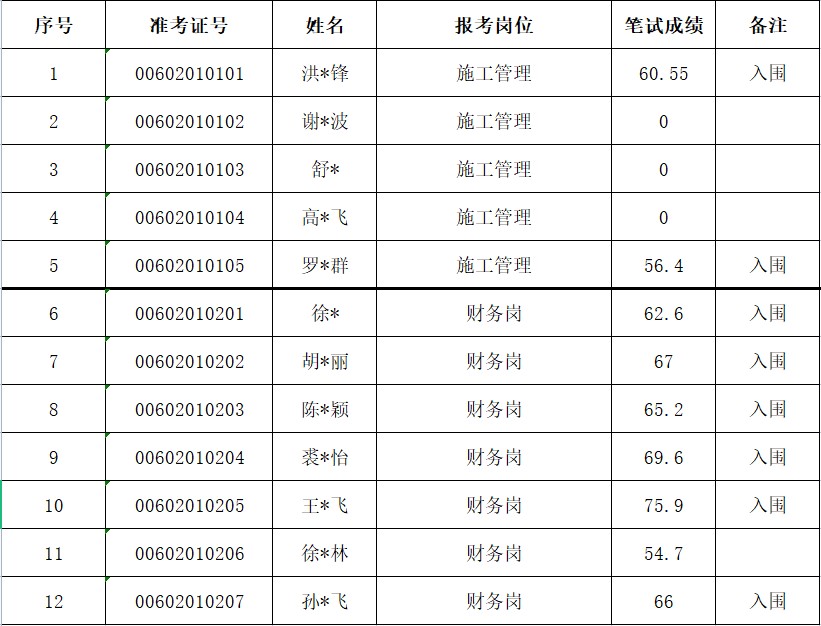紹興市柯橋區(qū)建設(shè)集團(tuán)有限公司及其下屬單位筆試成績(jī)