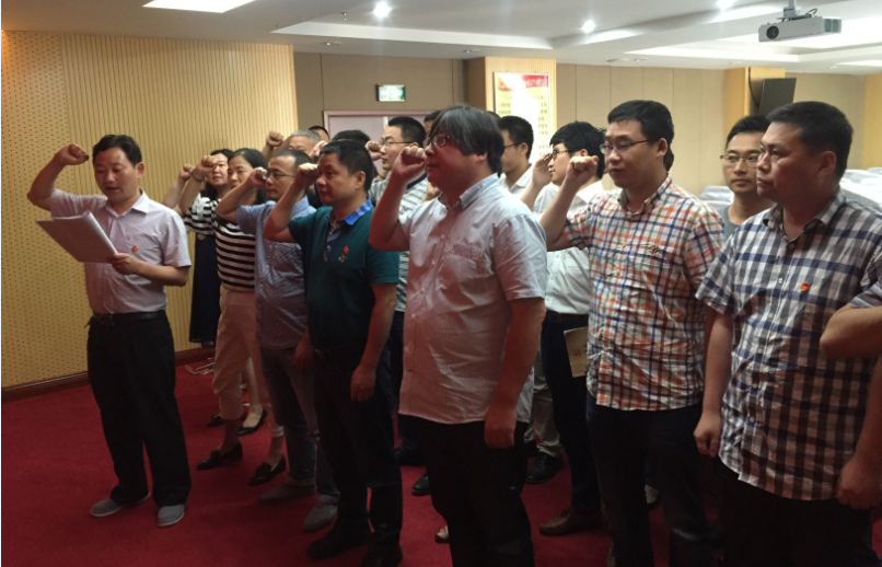 一、重溫誓詞不忘初心。全體黨員集中在黨員活動(dòng)室,面對(duì)鮮紅的黨旗,進(jìn)行莊嚴(yán)宣誓,踐行先鋒模范。