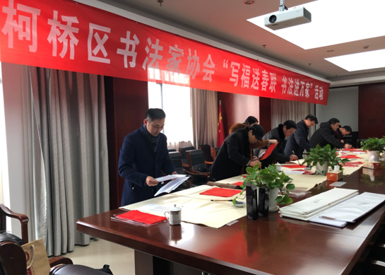 活動(dòng)現(xiàn)場(chǎng),六位書(shū)法家揮毫潑墨,并時(shí)不時(shí)地與書(shū)法愛(ài)好者面對(duì)面交流,從用筆方法、結(jié)構(gòu)安排、章法布局等方面詳細(xì)講解書(shū)法的法度及各種書(shū)體的特點(diǎn)。不一會(huì)兒,一幅幅雄健蒼勁的對(duì)聯(lián)和“福”字展現(xiàn)在大家面前,整個(gè)會(huì)議室頓顯紅紅火火,熱鬧喜慶。感謝區(qū)書(shū)法家協(xié)會(huì)的六位書(shū)法家為員工們送上一道別開(kāi)生面的視覺(jué)盛宴。